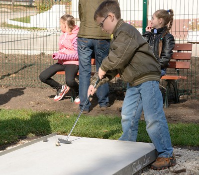 Конечно, гольф - это очень дорогое удовольствие. Мини-гольф более доступен. Он очень популярен в других странах, но для нас это пока явление новое. В Самаре эта увлекательная игра начала свое распространение с интерната для глухих и слабослышащих детей №117. Здесь появились две зоны для игры в мини-гольф с дорожками разного уровня сложности, с красочными элементами в виде мостиков, пирамид и даже трамплинов. Не дожидаясь официального открытия площадки, ребята увлеченно размахивали клюшками, ловко отправляя мячики в лунки. Среди учеников школы-интерната этот вид спорта очень популярен, некоторые ученики уже занимали призовые места на различных соревнованиях, и собственная база для занятий - давно ожидаемое событие.