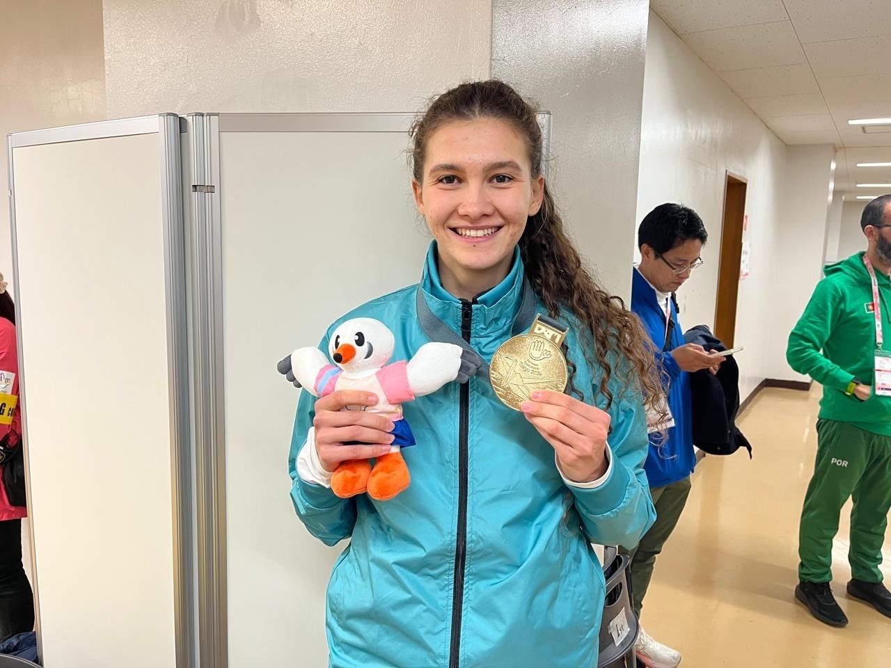 Для неё это вторая сурдлимпийская золотая медаль и первая личная медаль. Поздравляем!