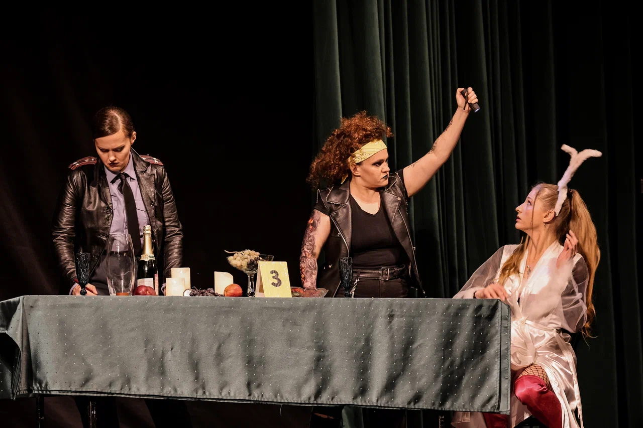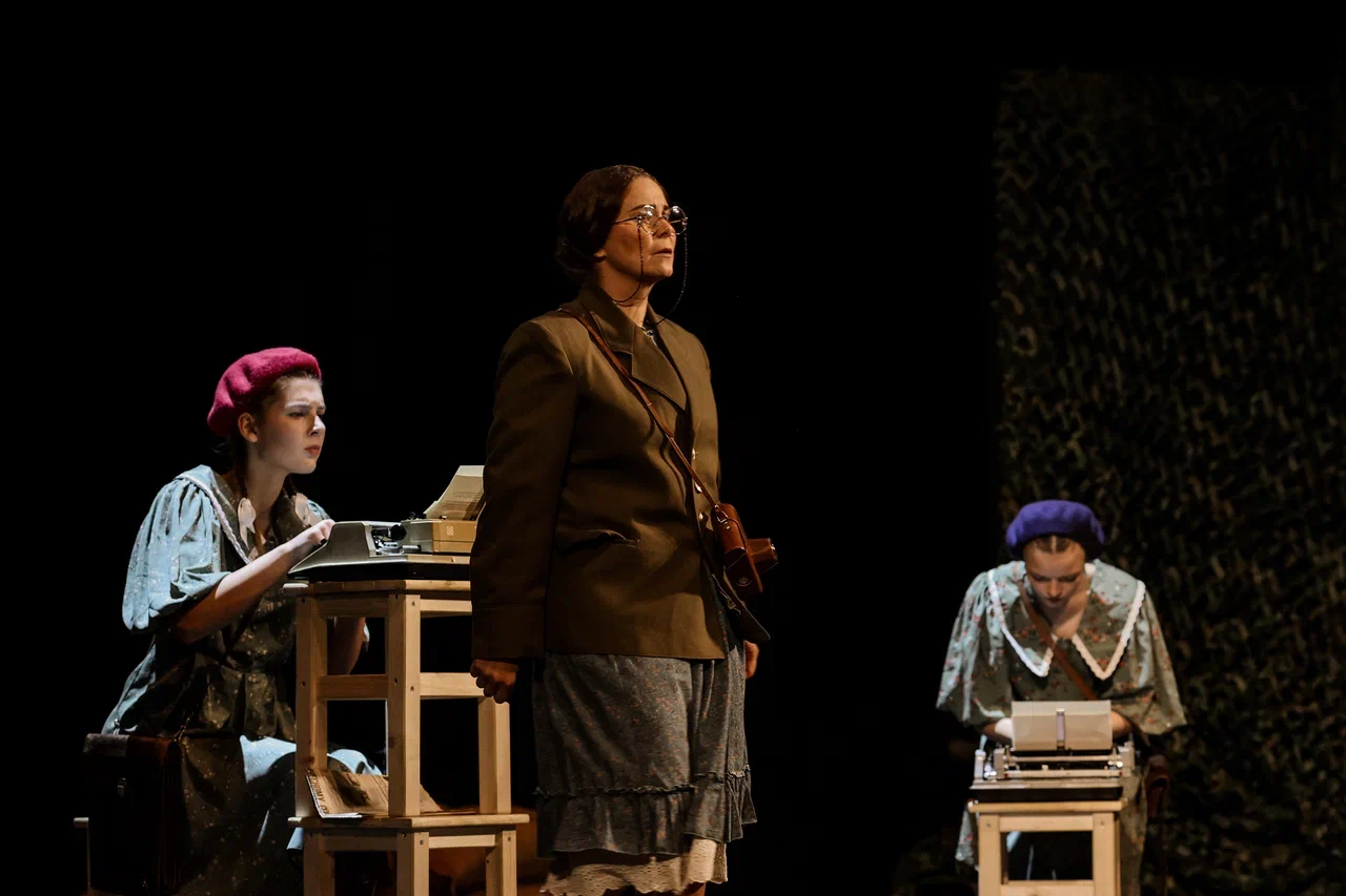 Сегодняшнюю конкурсную программу завершил музыкально-драматический спектакль «Не/женское дело». Его представил коллектив «Космическая молодежь» Инклюзивной творческой лаборатории Инновационного культурного центра города Калуги. Постановка, посвященная 80-летию Победы, рассказывает о героическом участии советских женщин в Великой Отечественной войне. Зритель видит войну глазами героинь спектакля — снайпера Татьяны Барамзиной, танкистки Марии Октябрьской, летчицы Марины Расковой, писательницы Мариэтты Шагинян. В сценарии использованы мемуары, газетные публикации, документальные диалоги, а также стихи и песни о войне. Режиссеры спектакля — Денис Морозов и Анастасия Пахомова.