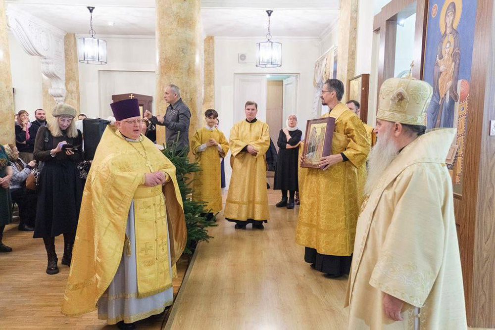 Митрополит Варсонофий подарил храму икону Рождества Христова, а настоятелю храма протоиерею Дмитрию Симонову вручил церковные награды – наперсный крест и знак «За добродетель».