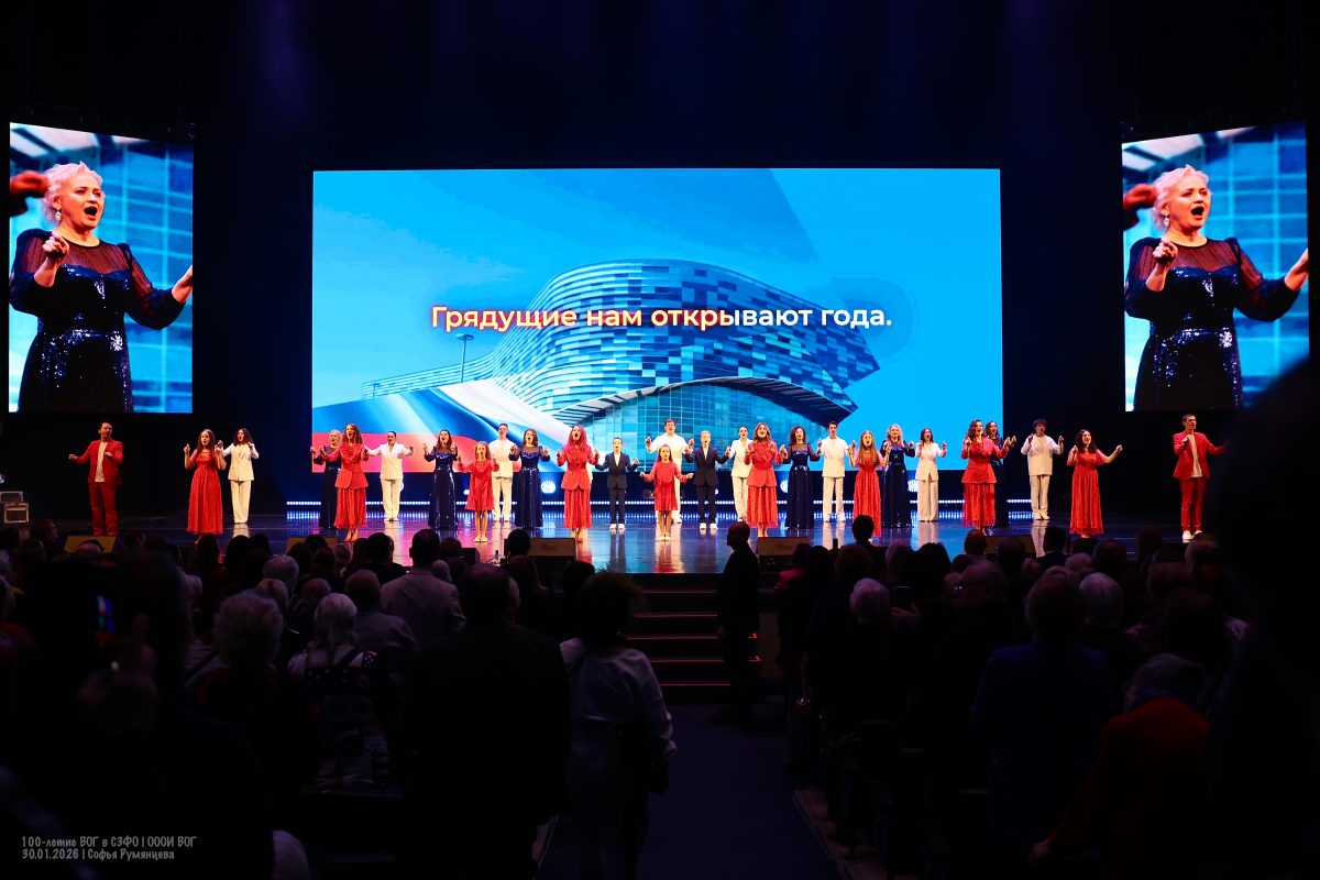 На концерте зрители увидели и услышали песню «Мы – ВОГ» в исполнении творческих коллективов СЗФО из Коми и Санкт-Петербурга, вместе с которыми спели Александр Аракелов, художественный руководитель СПб ГБУ «Культурно-досуговый центр «Московский», и Галина Зверкова, солистка Народного коллектива эстрадного театра малых форм «Петрополь Арт» СПб ГБУ «Культурно-досуговый центр «Московский». Получилось очень красивое и комбинированное исполнение: жестовое и голосовое.