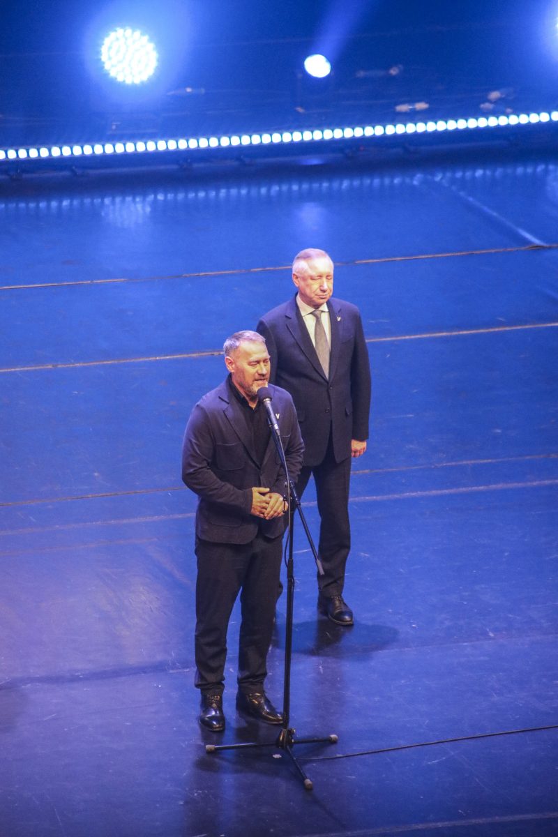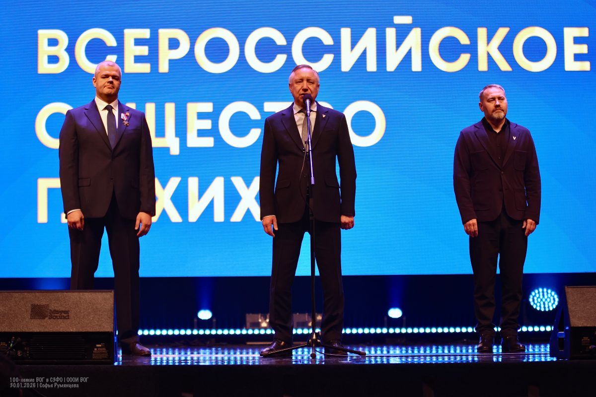 На сцену поднялся самый почетный и долгожданный гость праздника — Александр Дмитриевич Беглов, губернатор Санкт-Петербурга. Губернатор поздравил общество со 100-летием, отметив его вклад в помощь людям с нарушениями слуха в различных сферах жизни, включая трудоустройство, спорт и культуру, а также в воспитание молодого поколения.