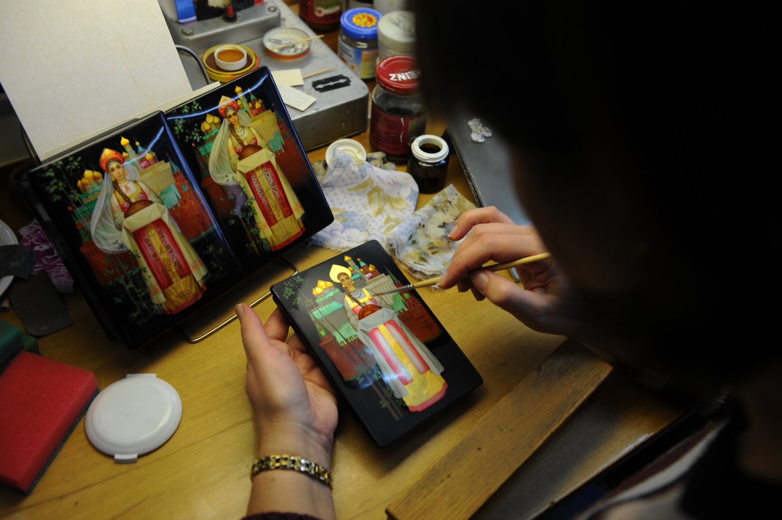 Федоскинская фабрика миниатюрной росписи: экскурсия по производству, ознакомление с технологическим процессом изготовления шкатулок, живописная мастерская с показательным мастер-класс росписи шкатулки, музей при фабрике. Посещение магазина при фабрике.