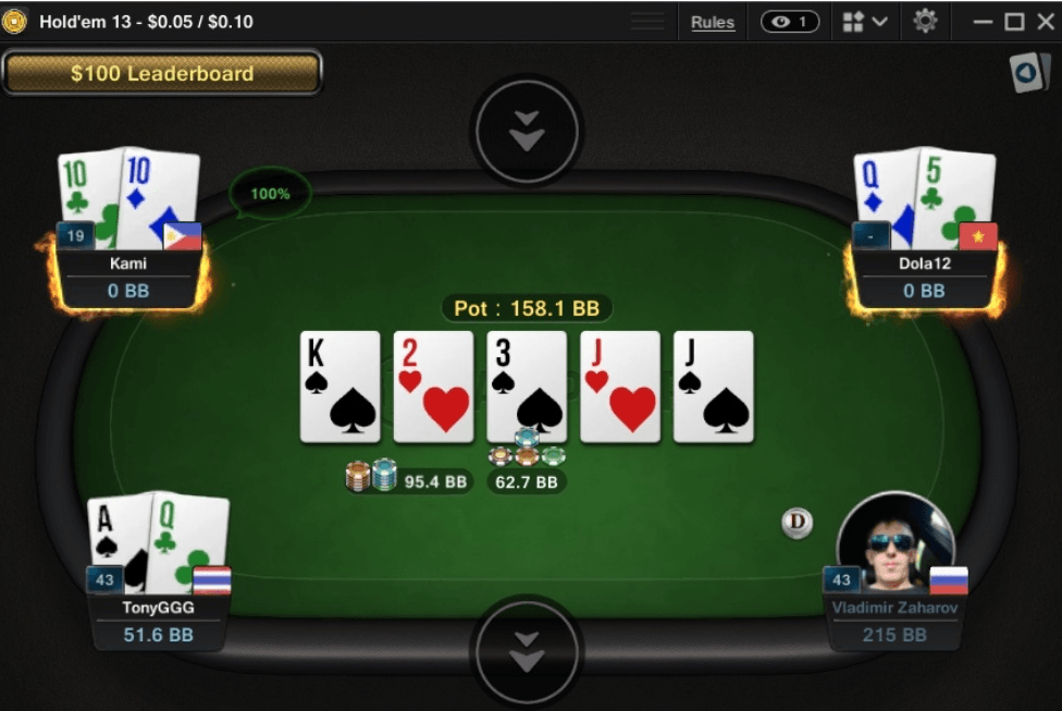Минимальные блайнды на кэш-столах холдема и омахи равны $0.05/$0.10. Реально играемые максимальные - $2/$5. За столом - шесть либо семь участников. В отдельной вкладке клиентской программы представлен покер с быстрым сбросом плохих карт и моментальным пересаживанием за другой стол.