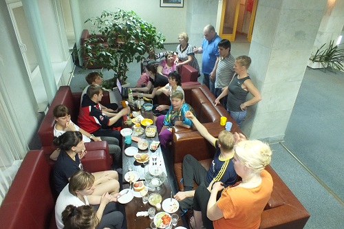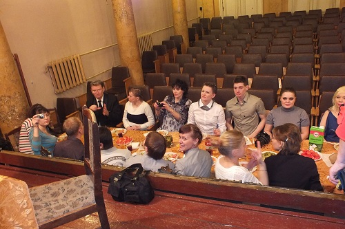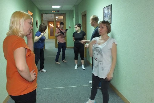 Отдохнув немного от первого, самого насыщенного, дня пребывания в СПб, мы собрались в холле 9-го этажа для репетиции предстоящего концерта для глухих жителей СПб. Репетиция смешалась с обсуждением увиденного за день. И поэтому спать разошлись уже во втором часу ночи.