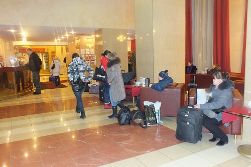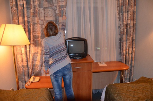 Только к 17:00 закончился первый экскурсионный день и нас привезли в гостиницу "Россия", где разместили на 9-ом этаже в 2-х-местных номерах со всеми удобствами
