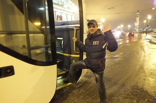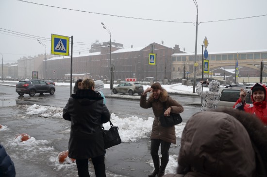 8 февраля, мы прибыли в Санкт-Петербург. Нас встречала гид турагенства "Верса" - Елена Анатольевна , которая на протяжении всех дней нашего пребывания в СПб сопровождала нас везде . Погрузившись в комфортабельный автобус, мы отправились на завтрак, обозревая при этом в окна автобуса просыпающийся город.