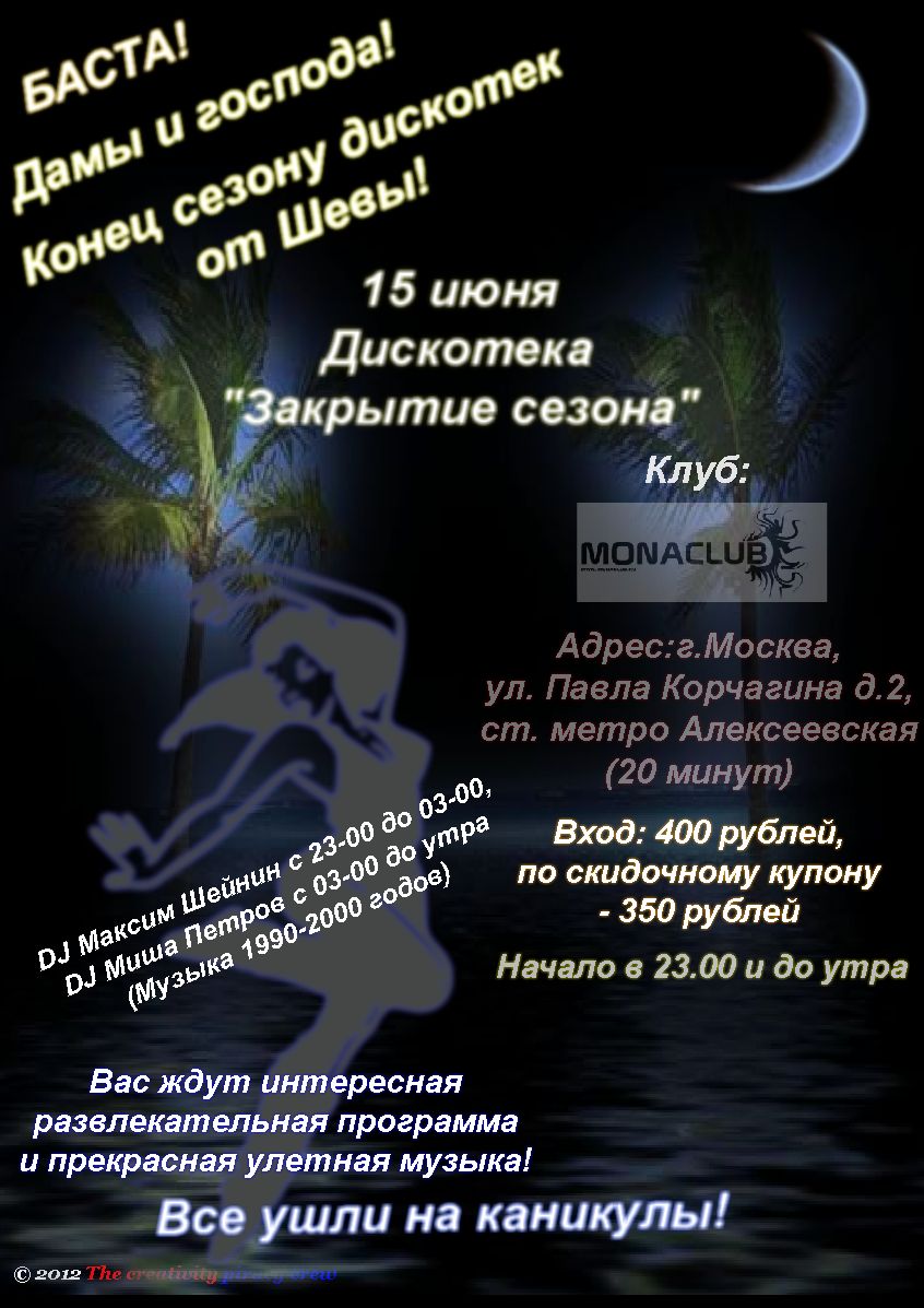 я там обожаю на дискотеку когда будет в клубе 2013 году?Гость 01.11.2012 02:17