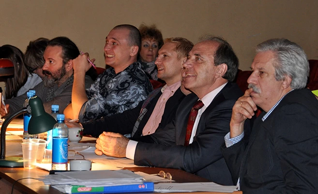 После конкурсной программы прошел семинар – слышащие звезды из жюри поделились с глухими любителями секретами мастерства. Вадим Савенков рассказал о тонкостях работы над пантомимой и клоунадой, Владимир Руднев дополнил его своими занимательными историями о мастерстве актера.