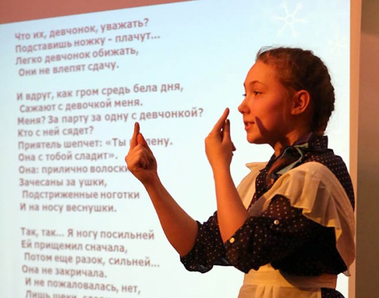 В третий раз – значит, уже можно говорить о традиции. Хорошей и полезной традиции – ведь конкурс прививает глухим школьникам любовь к литературе и умение перелагать ее на жесты. По крайней мере, так было задумано одним из инициаторов конкурса Валерием Куксиным, который преподавал литературу и русский язык как раз в этом учебном заведении.