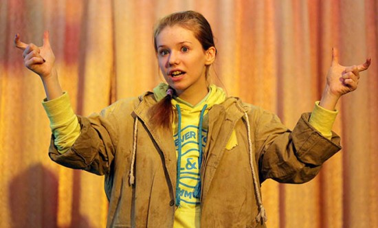 Еще одна номинация – «Декламация в лицах». Два коллектива (из школ №10 и №101) получили поощрительные призы. Я бы выделил Ивана Каминского и Максима Иванова из 101-й, они так свободно и непринужденно играют на сцене, с такими понятными жестами, что, пожалуй, их надо запомнить на будущее как многообещающих артистов.