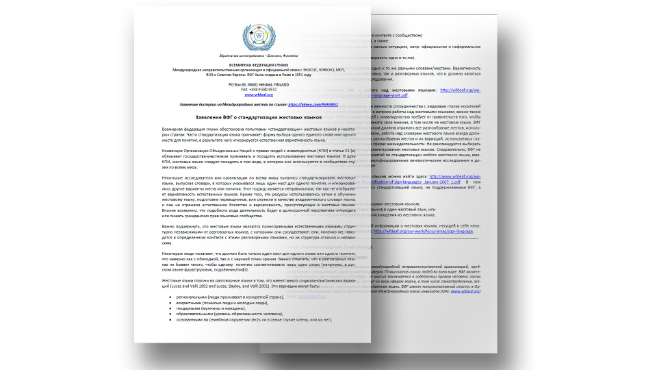Всемирная федерация глухих обеспокоена некорректными попытками «стандартизации» ЖЯ