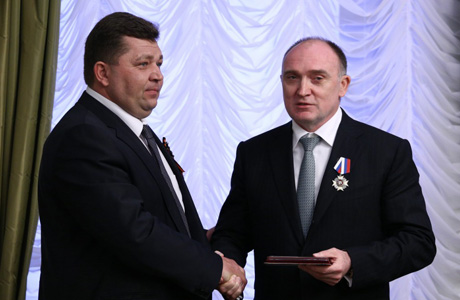 Традиционное аппаратное совещание губернатора Челябинской области сегодня началось с церемонии награждения. Борису Дубровскому вручили нагрудный знак за особые заслуги перед всероссийским обществом глухих, а также благодарность. Таким образом главу региона отблагодарили за проведение Сурдлимпийских игр.