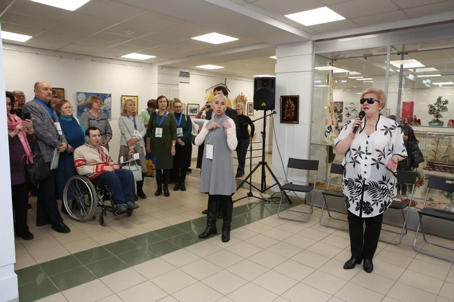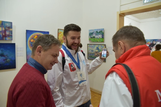 Сам президент Ассоциации глухих художников России был нарасхват у фотографов, которые просили его попозировать на фоне своих работ.