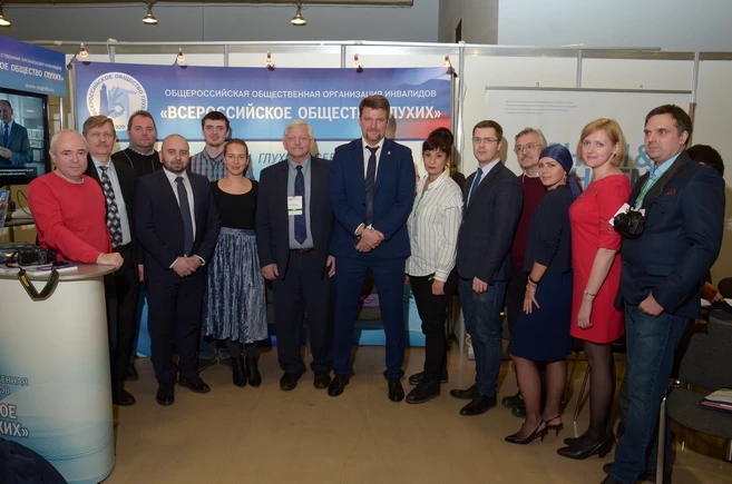 На стенде Всероссийского общества глухих: сотрудники организации во главе с президентом В. Н. Рухледевым