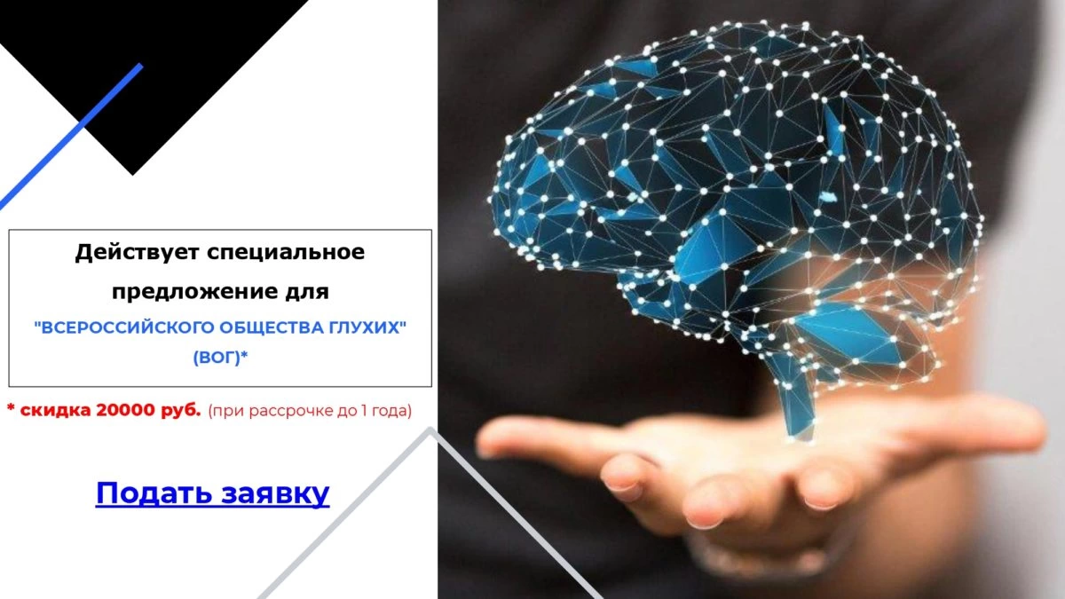Университет искусственного интеллекта проводит набор глухих и слабослышащих людей на обучение специальности «Разработчик AI». AI (artificial intelligence) с английского языка переводится как искусственный интеллект.