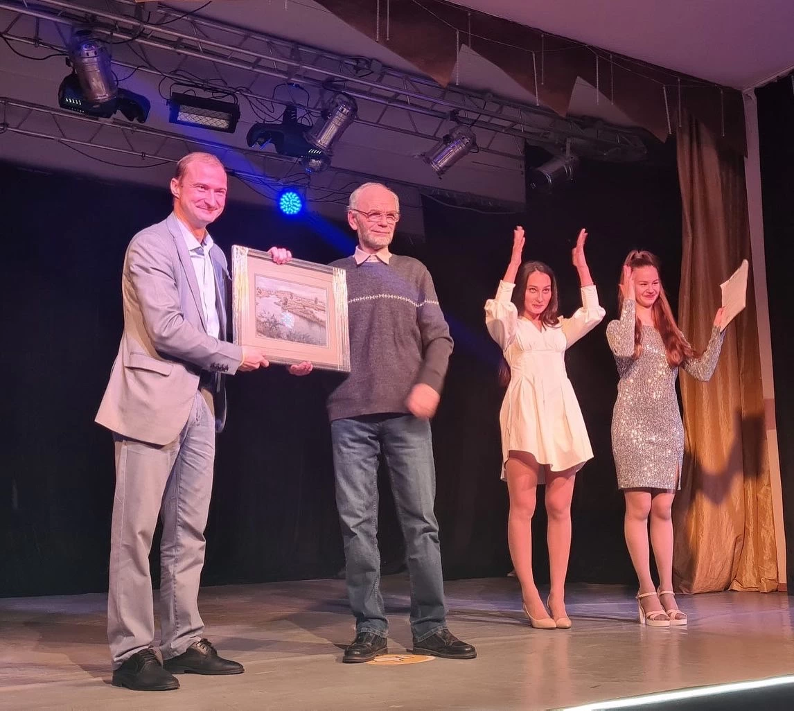 От имени ЭМО ВОГ в лице художника Горюнова Михаила вручили в подарок картину председателю МОРО ВОГ Барсуков М. В.