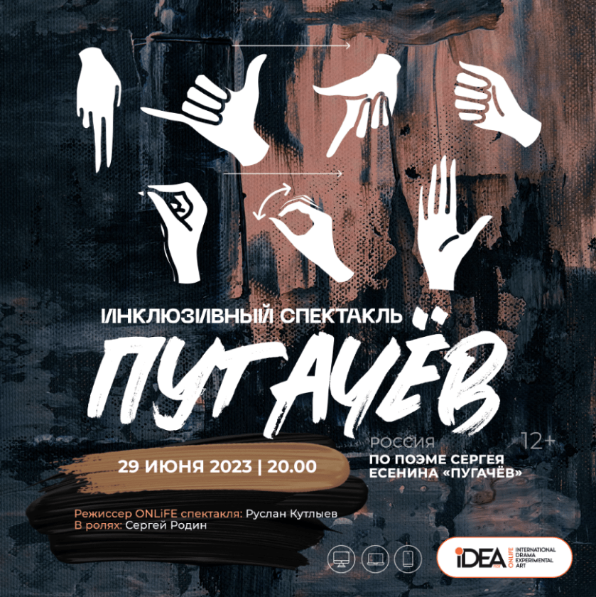 29 июня пройдет премьера моноспектакля на жестовом языке «Пугачев». Спектакль будет транслироваться в интернете в новаторском формате onlife, совмещающем живую актерскую игру с возможностями мультимедиа.