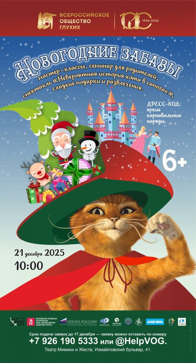 21 декабря в Театре Мимики и Жеста состоится яркое и волшебное новогоднее музыкальное представление — спектакль «Невероятная история кота в сапогах».