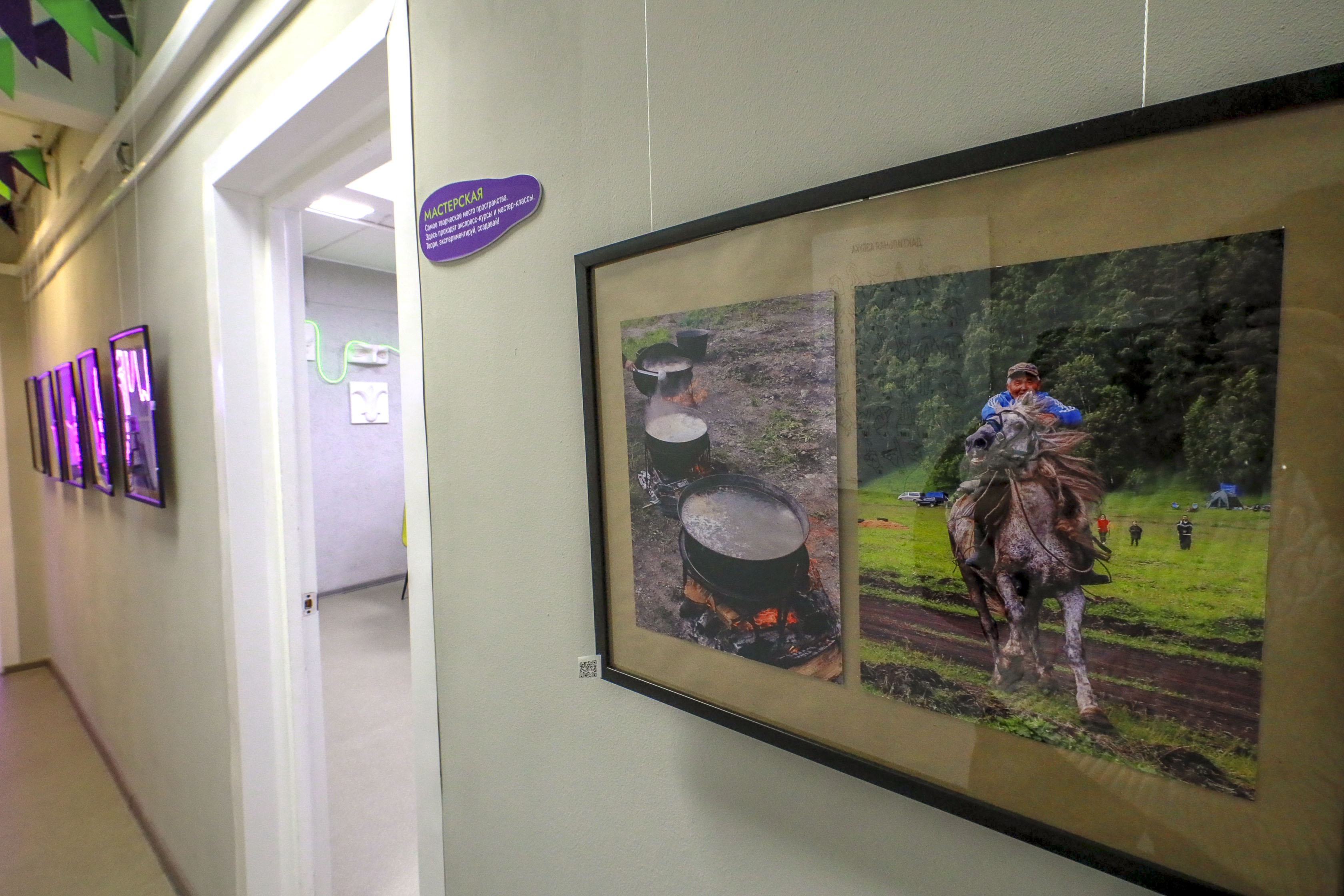 Рядом ещё одна интересная выставка с профессиональными художественными снимками. Оригинальность экспозиции в том, что можно перейти по QR-коду и узнать озвученную на РЖЯ историю каждого фото.