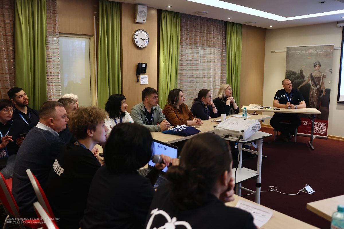 Первый день деловой программы был очень насыщенным. Слаженно и профессионально работали переводчики из Москвы – Тимофей Белов и Ангелина Шашкова, а также из Санкт-Петербурга – Ольга Сидорович и Руслан Давдян.