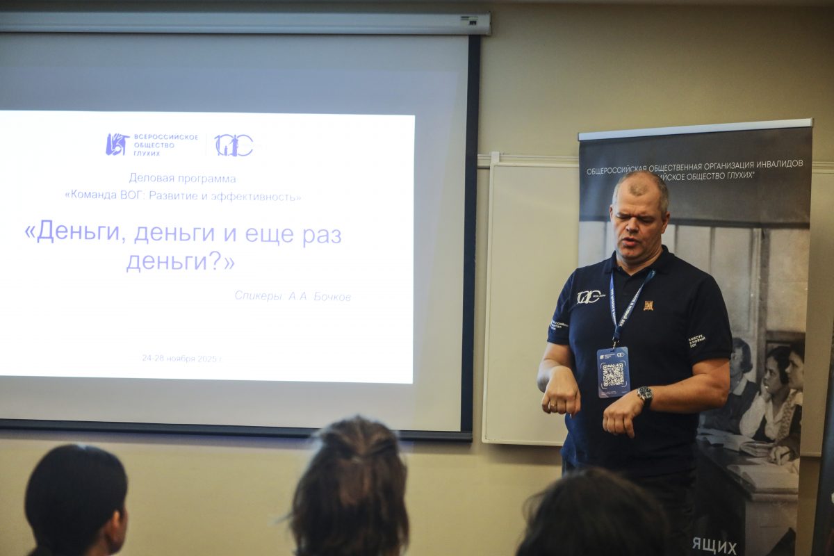 Заглянем к председателям региональных отделений. Екатерина Соколова подробно рассказала об особенностях учета членов Всероссийского общества глухих (ВОГ). Она подчеркнула, что грамотное документальное оформление деятельности региональных отделений ВОГ, включая правильное проведение отчетно-выборных собраний и конференций, имеет критическое значение для обеспечения легитимности всей организации в целом. Четкий и корректный учет членов и соблюдение всех процедурных требований – залог устойчивого функционирования и доверия к ВОГ.