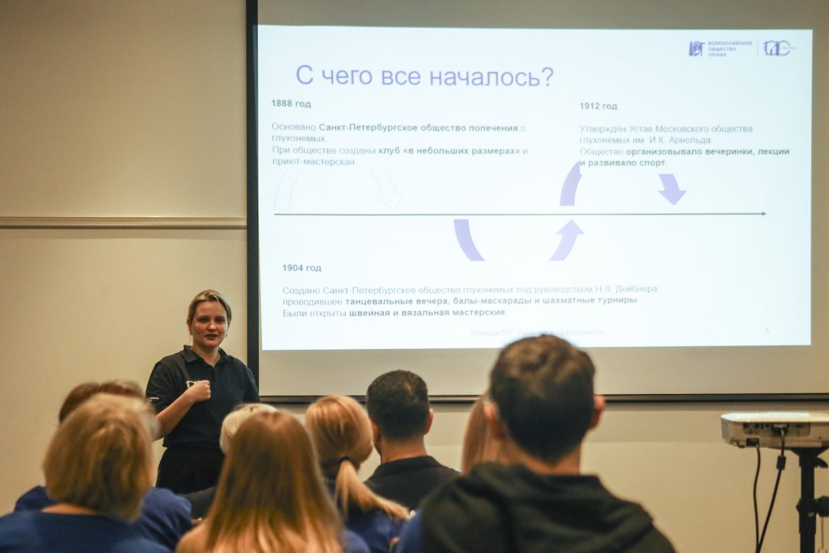 Татьяна Александровна подчеркнула, что без глубокого знания истории Общества глухих невозможен прогресс в его развитии в настоящее время.