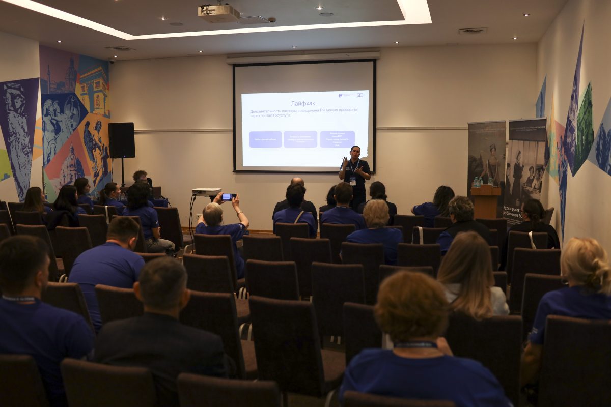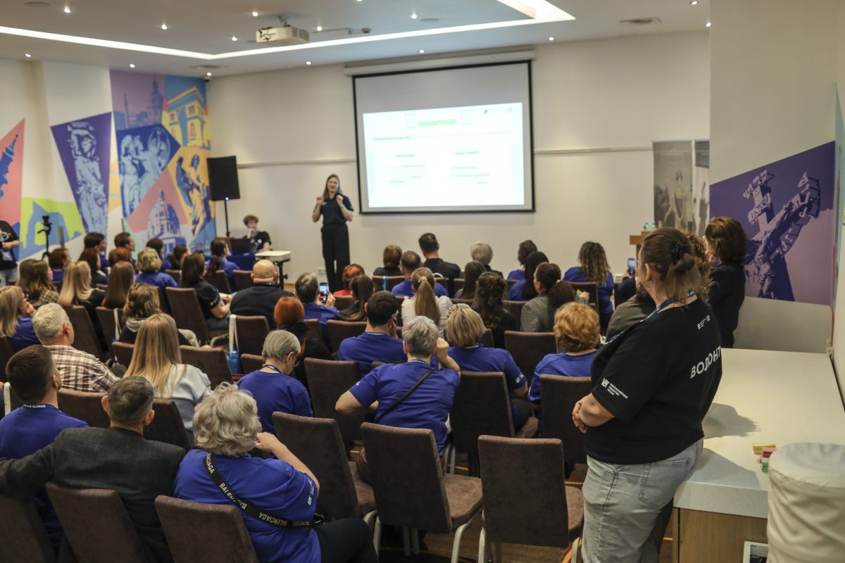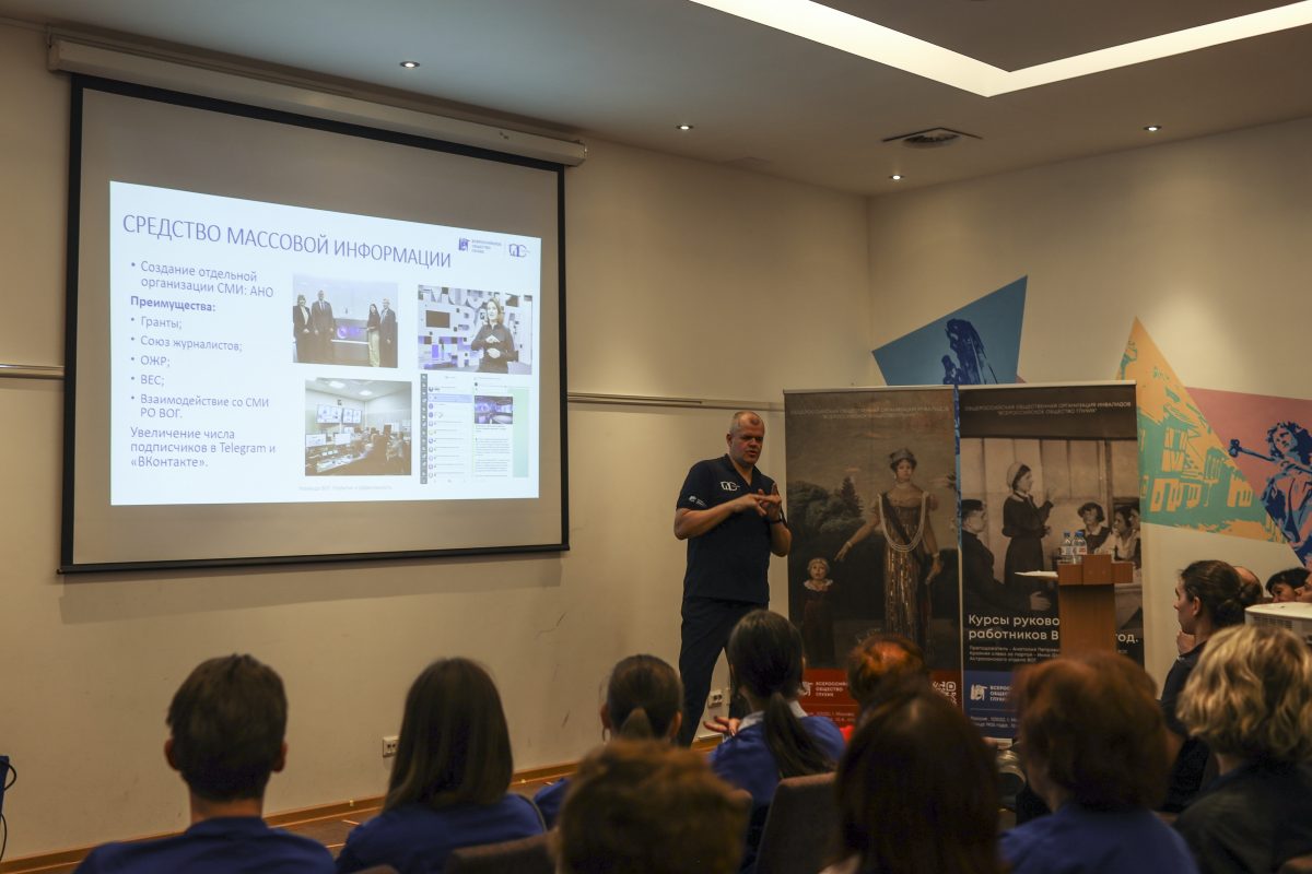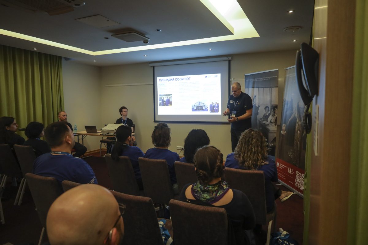 После небольшого десятиминутного перерыва снова произошло разделение: председатели региональных отделений пошли к Екатерине Соколовой изучать. Как правильно вести учет членов ВОГ, председатели местных отделений пошли слушать презентации своих коллег о пяти топовых мероприятиях, которые они проводят в своих местных отделениях РО ВОГ.