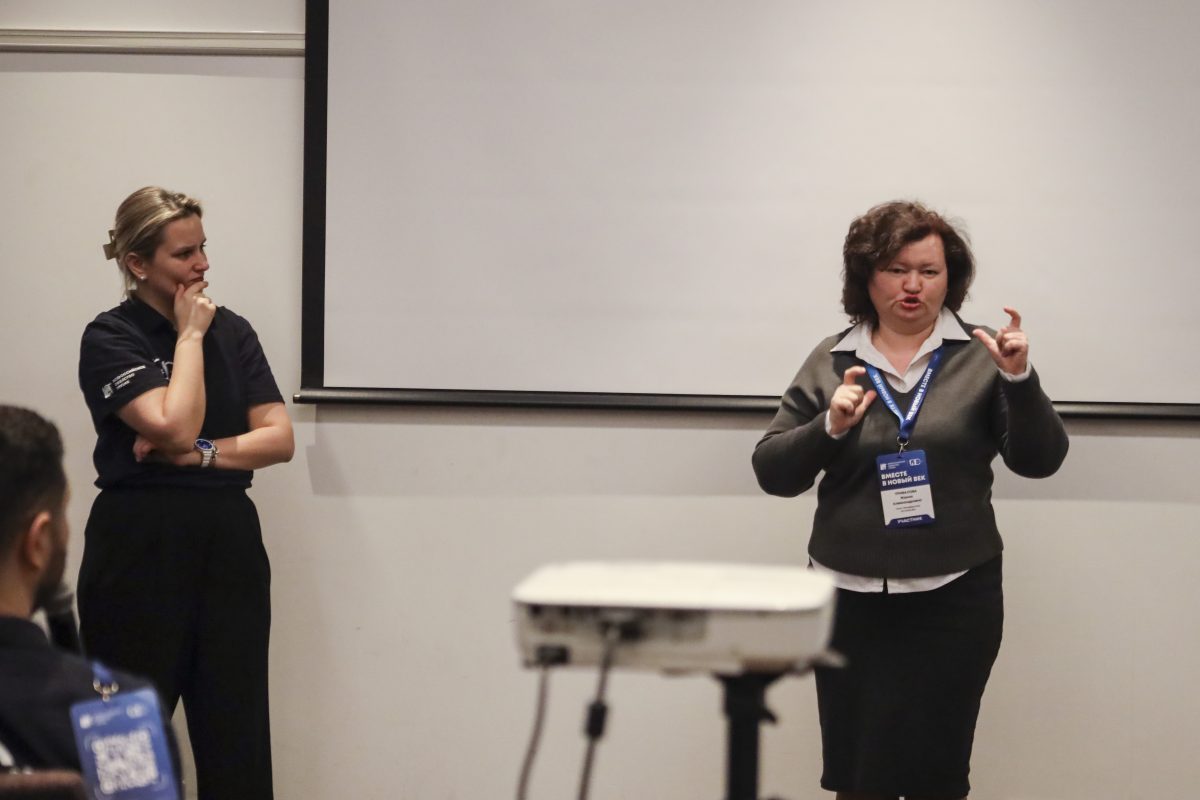 Живой отклик аудитории вызвала тема перевода на РЖЯ на избирательных участках. Опыт Санкт-Петербурга и Москвы показывает, что переводчики на выборах уже присутствуют в определенных местах, однако в регионах эта практика пока не распространена. Все выразили надежду на расширение этой позитивной практики.