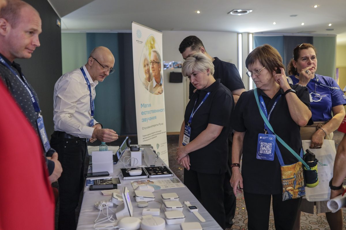 После обеда эстафету подхватили наши замечательные партнеры из «Исток-Аудио». В фойе они развернули целую выставку своих «умных» приборов и слуховых аппаратов, увлеченно консультируя всех желающих.