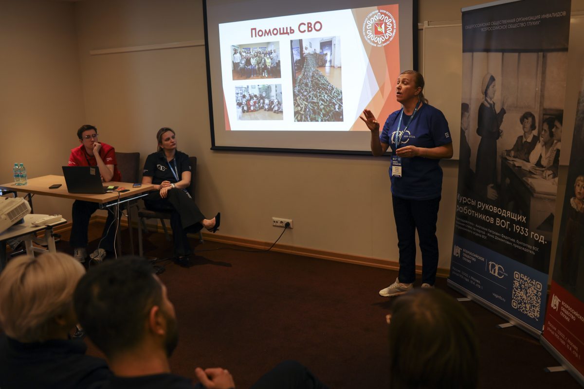 Тем временем, в соседнем конференц-зале, председатели местных отделений РО ВОГ слушали вице-президента Татьяну Романцову. Она провела для них дискуссию-тренинг на важную тему: