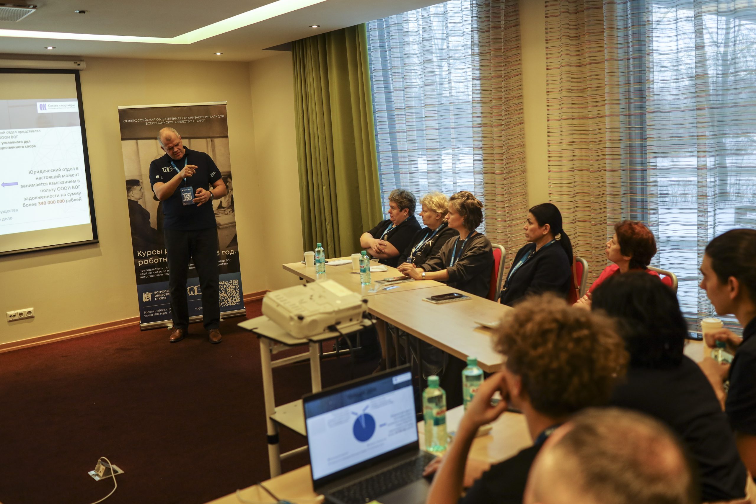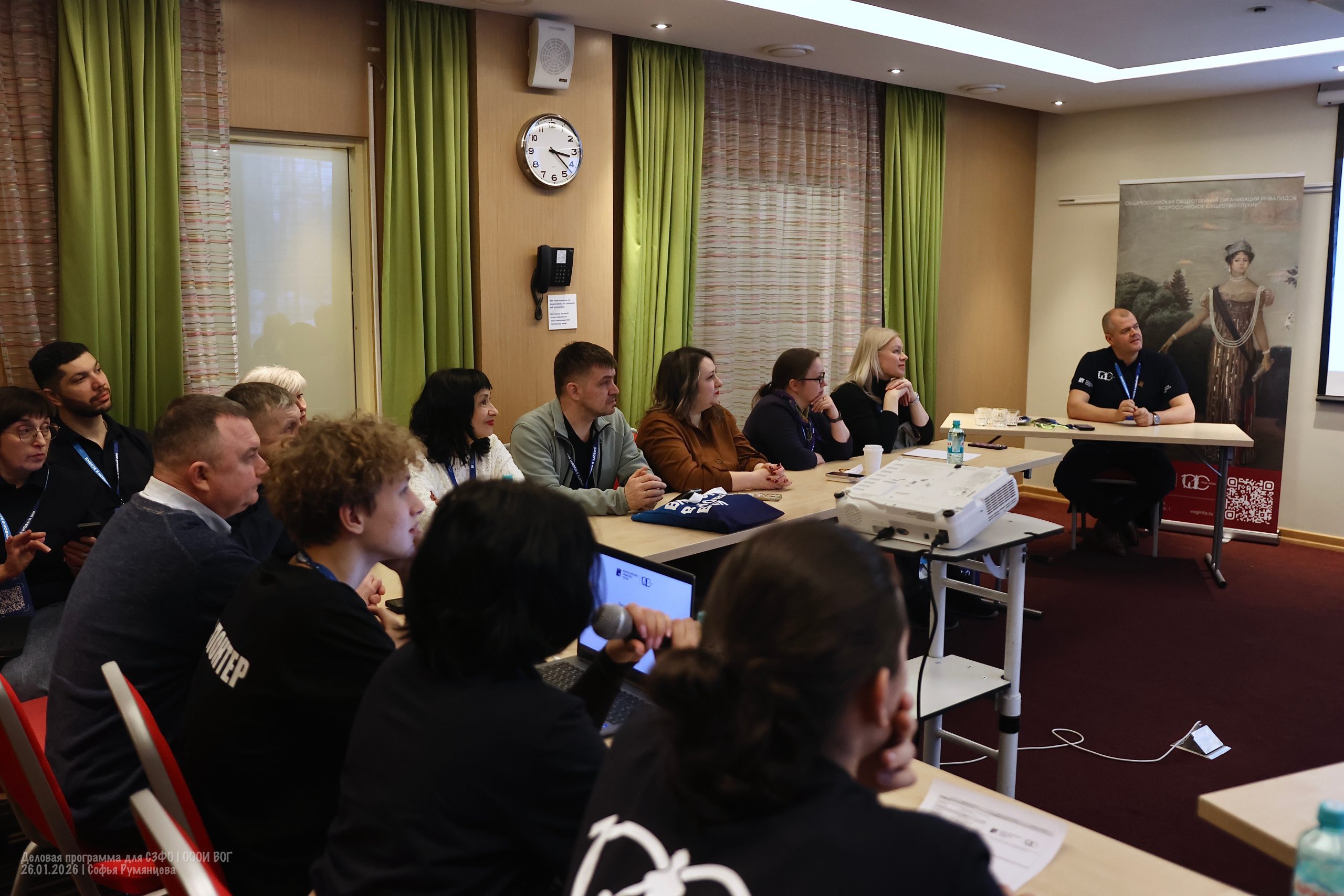После обеда началась деловая программа для руководителей региональных отделений ВОГ со знакомства участников. Были представлены руководители десяти региональных отделений ВОГ Северо-Запада: Олег Дуркин (Санкт-Петербург), Алексей Мякшин (Архангельск), Светлана Мухинова (Вологда), Екатерина Алимичева (Калининград), Дмитрий Мишин (Карелия), Людмила Кызъюрова (Коми), Марина Чекменева (Ленинградская область), Галина Рясная (Мурманск), Екатерина Иваненко (Великий Новгород) и Сергей Кательницкий (Псков), а также Анна Попелло (Томск) и Роза Березовская (Кострома). Каждый руководитель представил себя, свой опыт работы в системе ВОГ, время вступления в должность и предоставил информацию о количестве местных отделений и членов ВОГ в своем регионе.