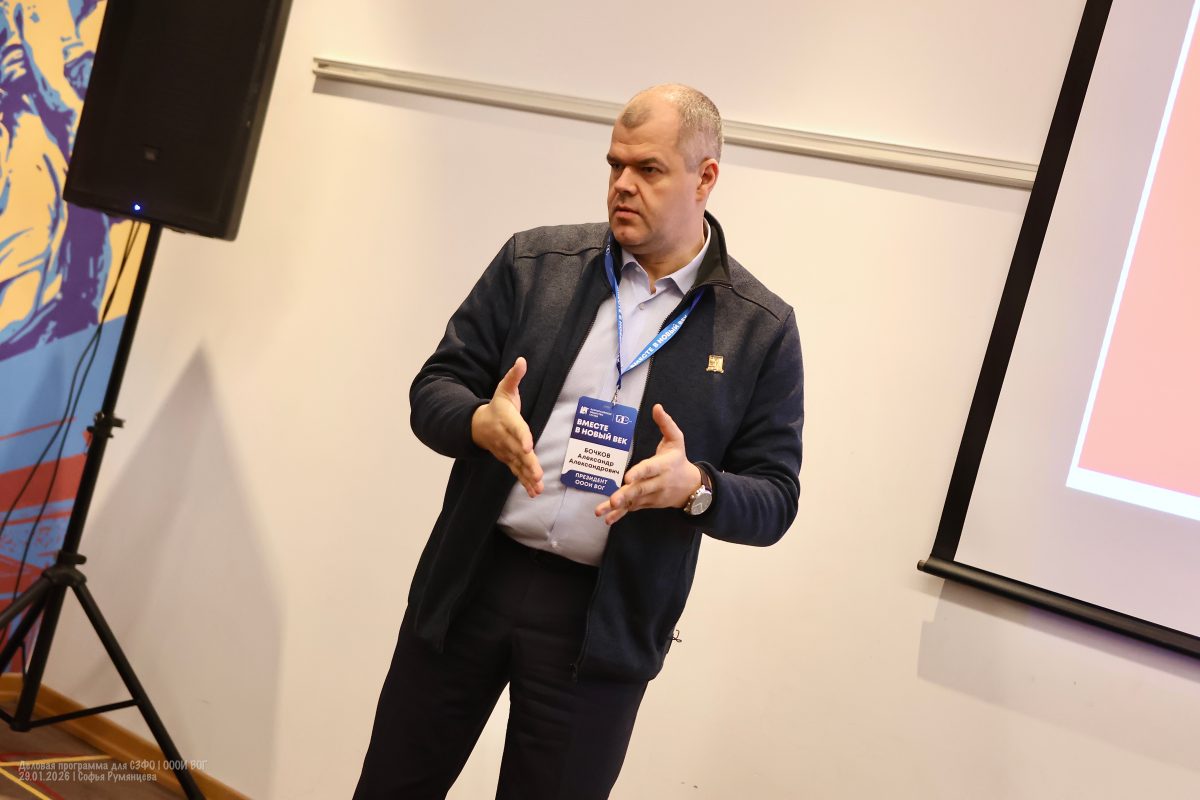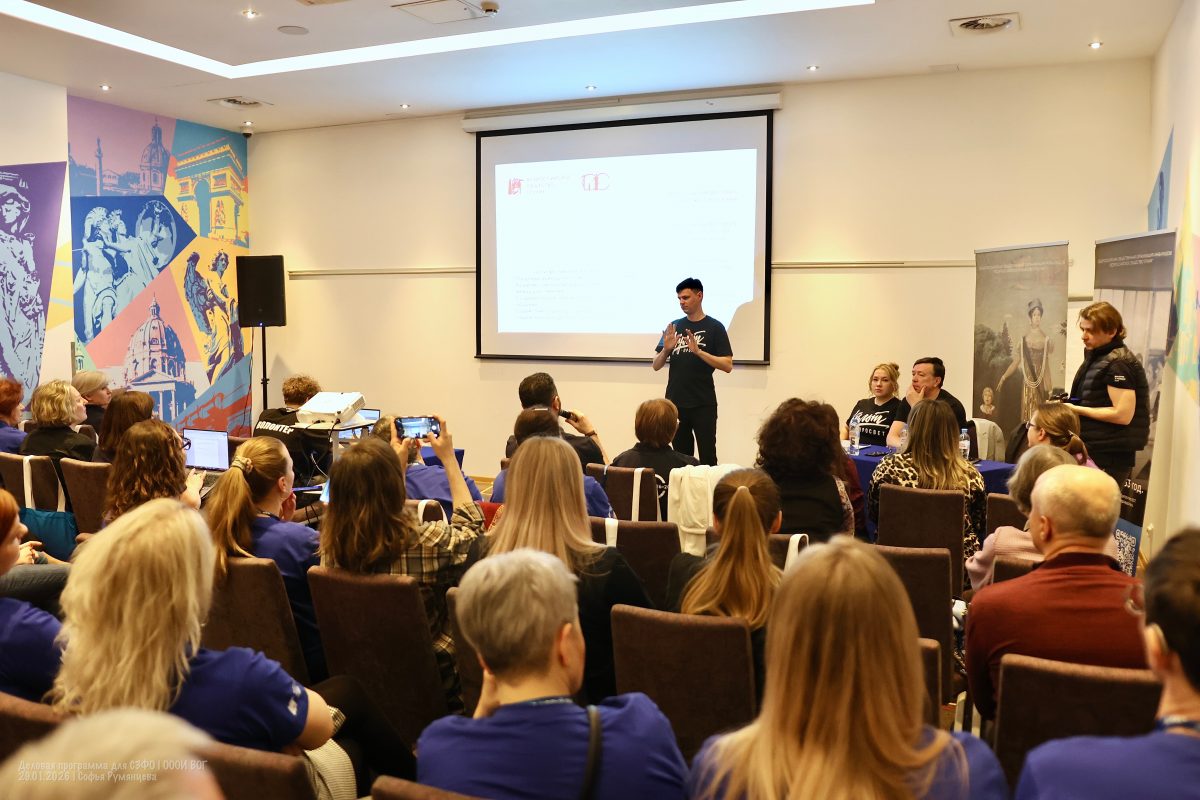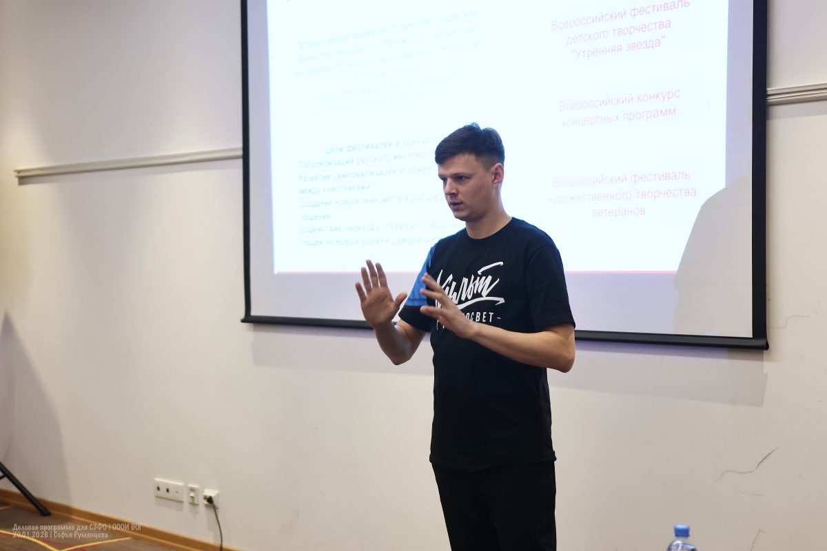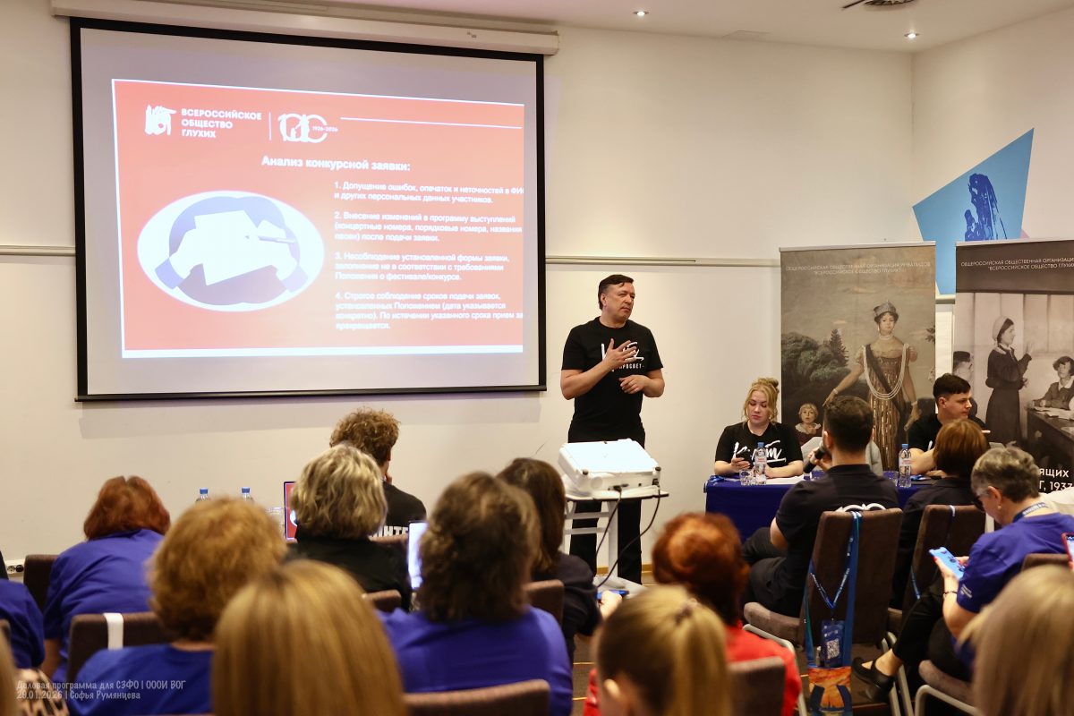 Алексей Лемешев поведал участникам Деловой программы по СЗФО о том, что ВОГ при поддержке Министерства культуры России ежегодно организует различные фестивали и конкурсы, которые раскрывают творческий потенциал людей с нарушением слуха и интегрируют их в культурное пространство России.