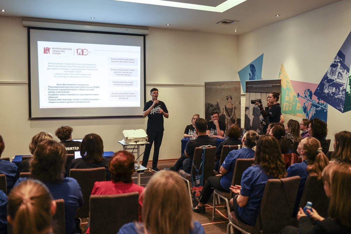 Семинар открыла Анна Геннадьевна, которая отметила, что это цель этого мероприятия, в первую очередь, это обмен опытом и поддержка сообщества глухих: надо делиться позитивным опытом с коллегами из других регионов и совместно разрабатывать механизмы для работы в разных условиях, также очень важно поддерживать внутри сообщества культурных работников, особенно в контексте эмоционального выгорания. «Культурный сотрудник другому сотруднику – психолог, товарищ и поддержка» – такая актуальная фраза прозвучала на семинаре. И это действительно так! Также спикер отметила, одной из острых проблем в регионах является уровень квалификации кадров, особенно в вопросах взаимодействия с молодежью и привлечения ее к культуре.