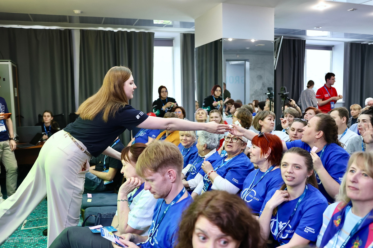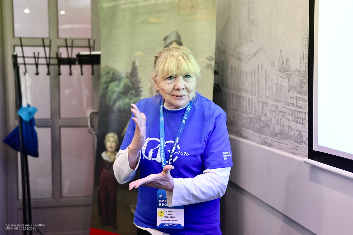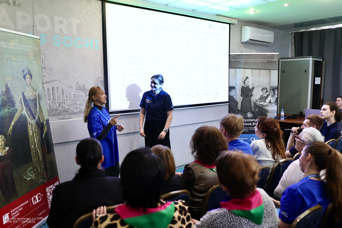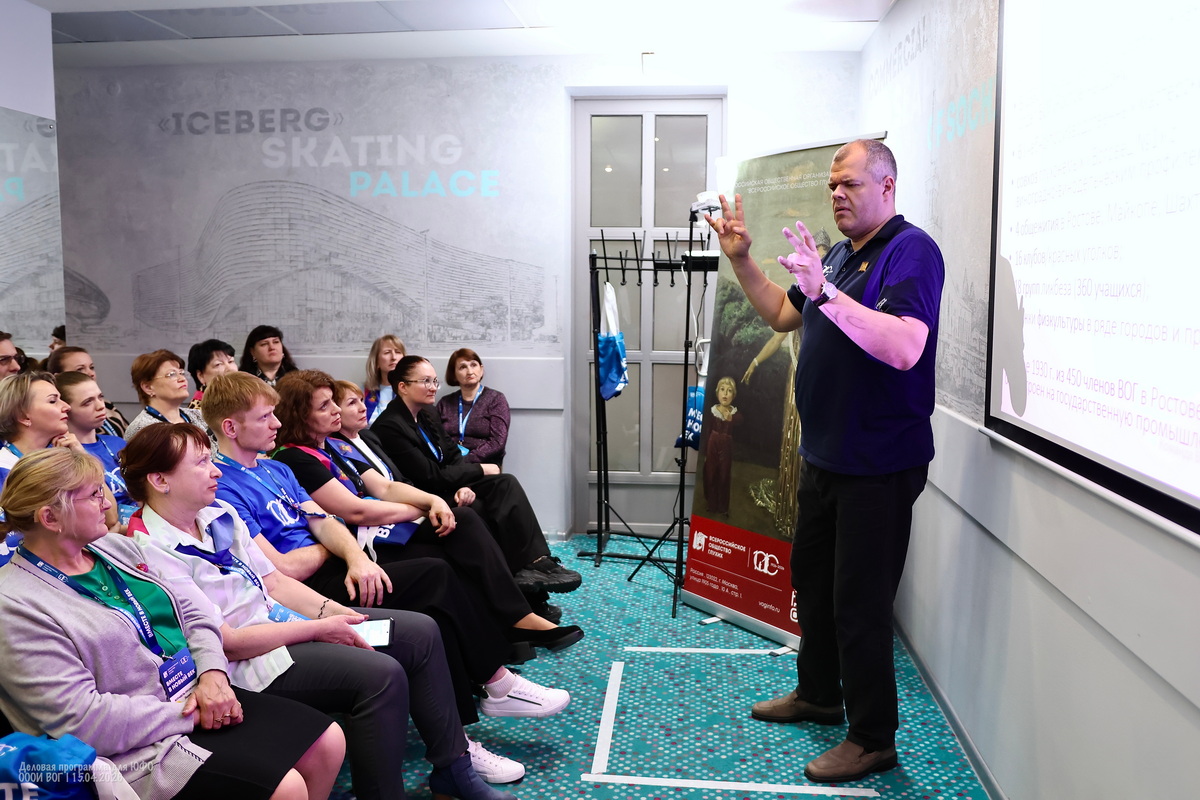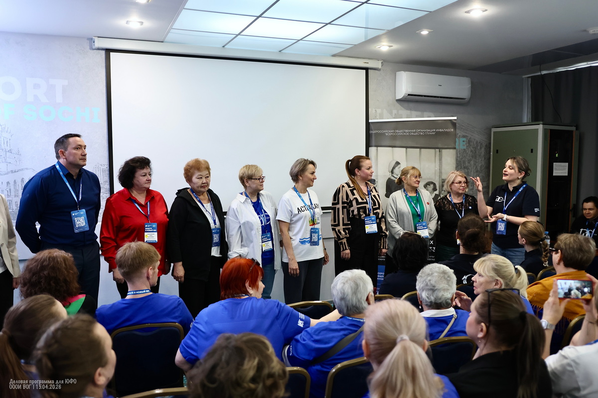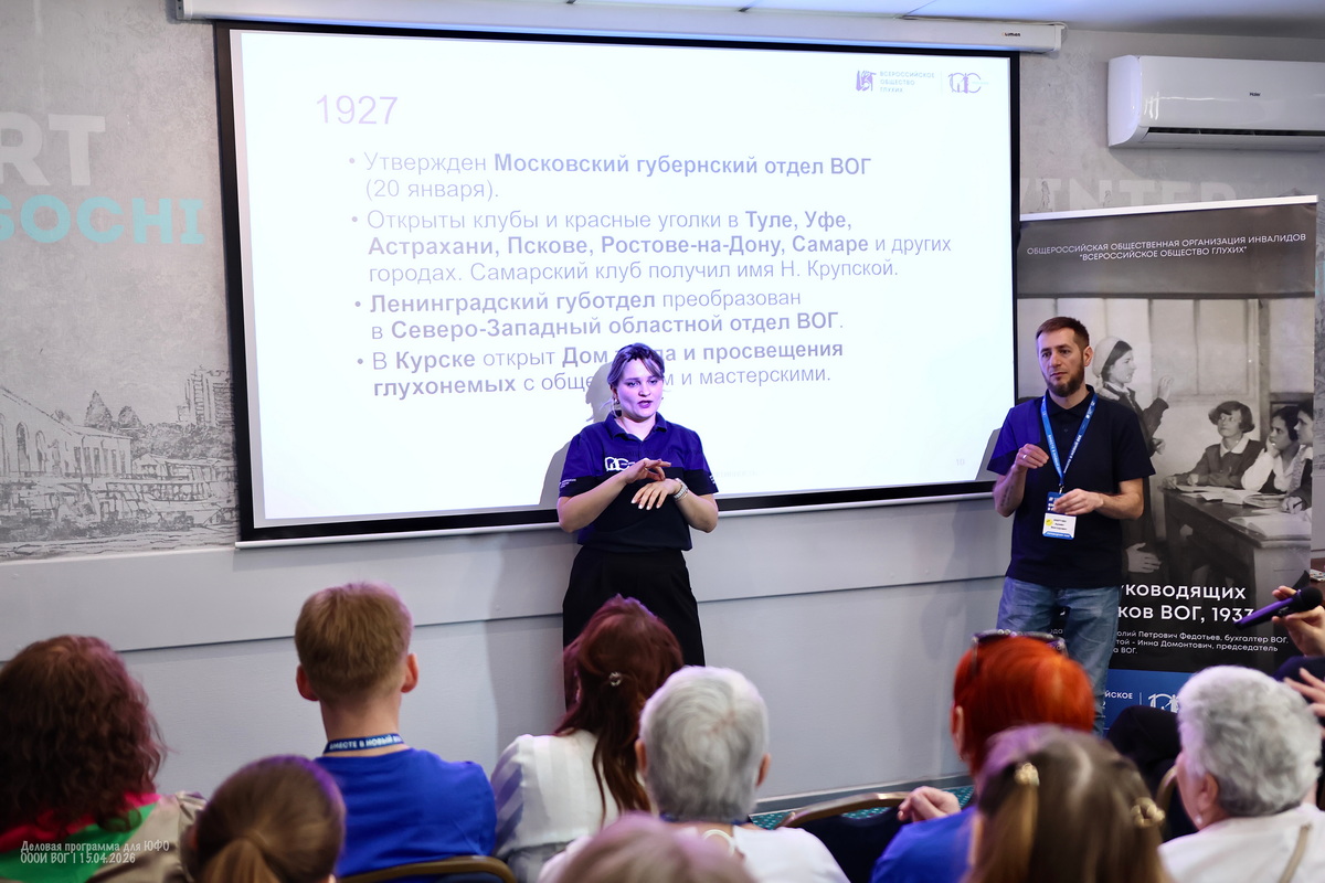 Участники деловой программы делятся множеством личных историй и мотивов — кто-то не мыслит себя без друзей из Общества глухих, кто-то мужа нашёл через ВОГ, кто-то любит заботиться о других, кто-то в ответ начинает допытываться у самой ведущей — а тебе-то зачем?