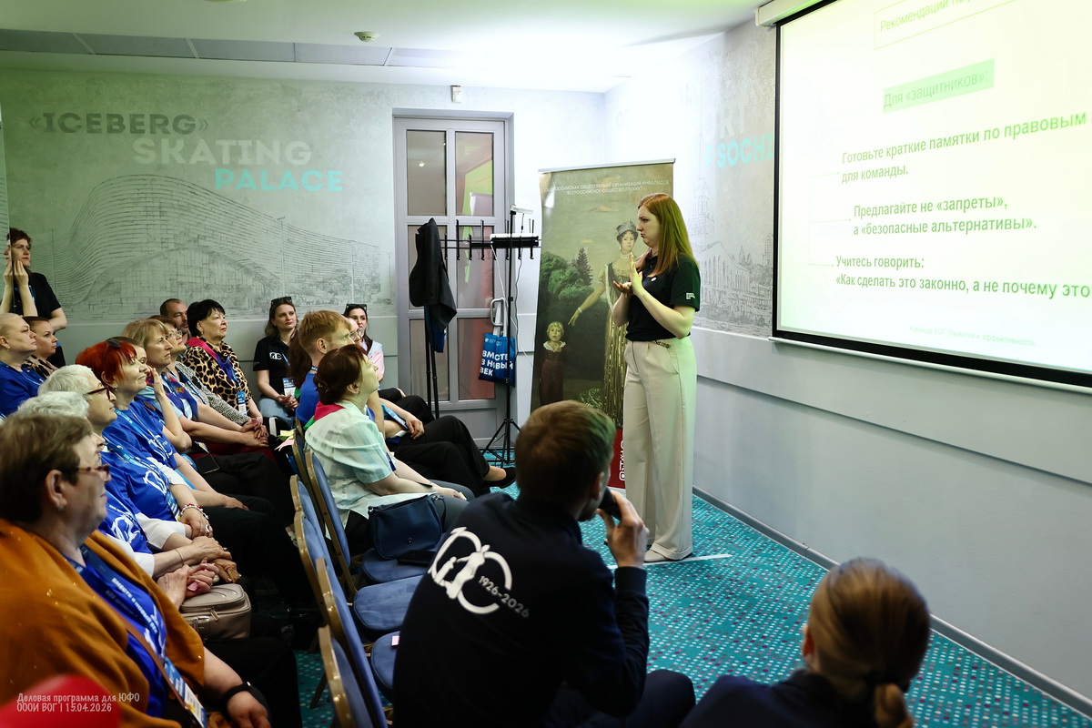 Параллельно во втором зале для председателей РО прошла тема «Устав ВОГ». Многие недооценивают значение этого основополагающего документа, поэтому углублённое обсуждение необходимо.