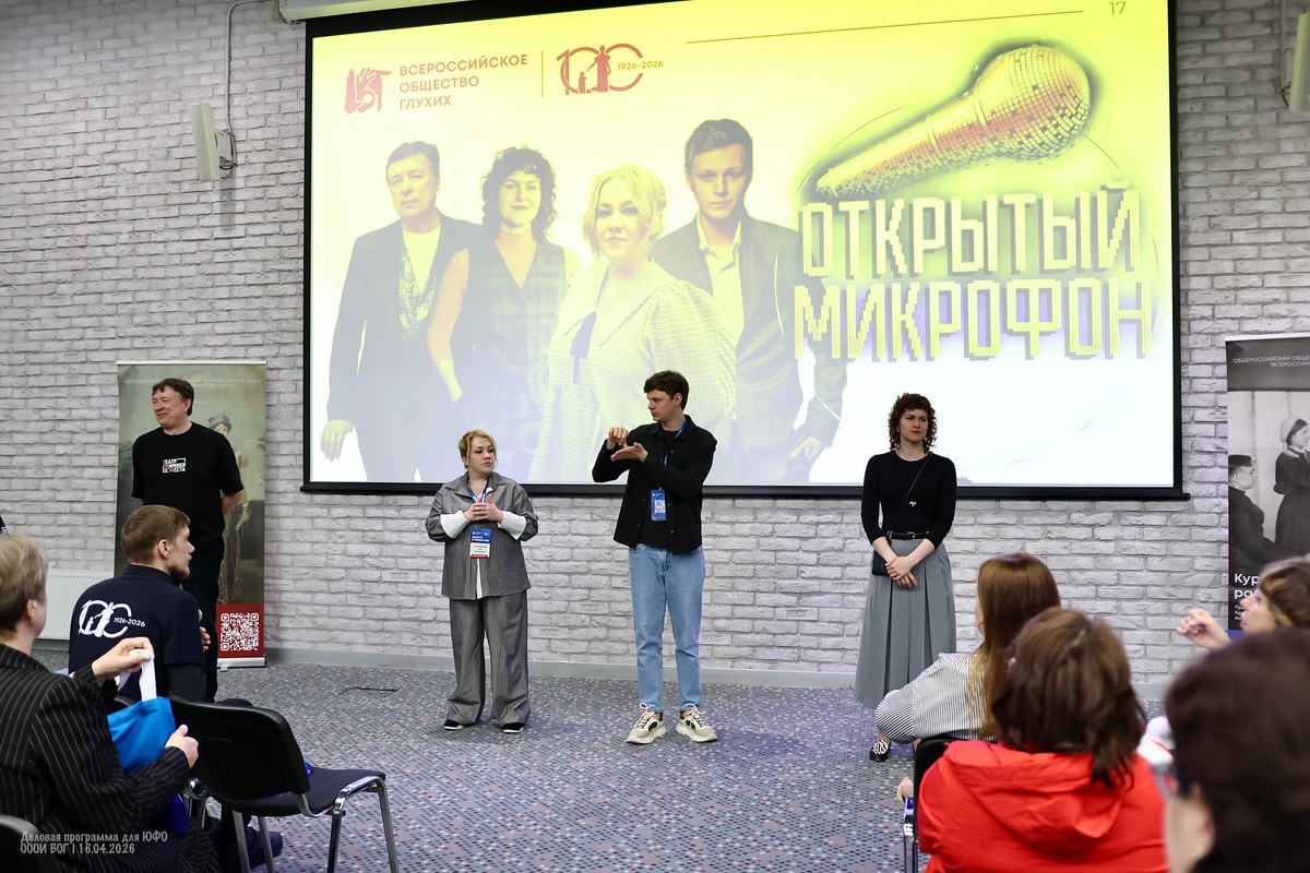 Четвёртый день был посвящен освещению культурной сферы деятельности ВОГ. За предыдущие дни уже рассказывали об истории, структуре Общества глухих и о том, зачем оно нужно, а теперь настала очередь культуры — с участием руководства Театра Мимики и Жеста и отдела культуры ВОГ.