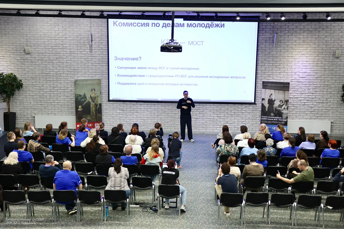 Спикер рассказал о Комиссии по делам молодёжи (КДМ), которая выступает связующим звеном между ВОГ и глухой молодёжью. Макар затронул проблему привлечения молодых людей: что им интересно и с помощью каких инструментов это можно решить. В конце лекции он ответил на горячие вопросы председателей и предоставил телеграм-канал горячей линии КДМ для обратной связи.