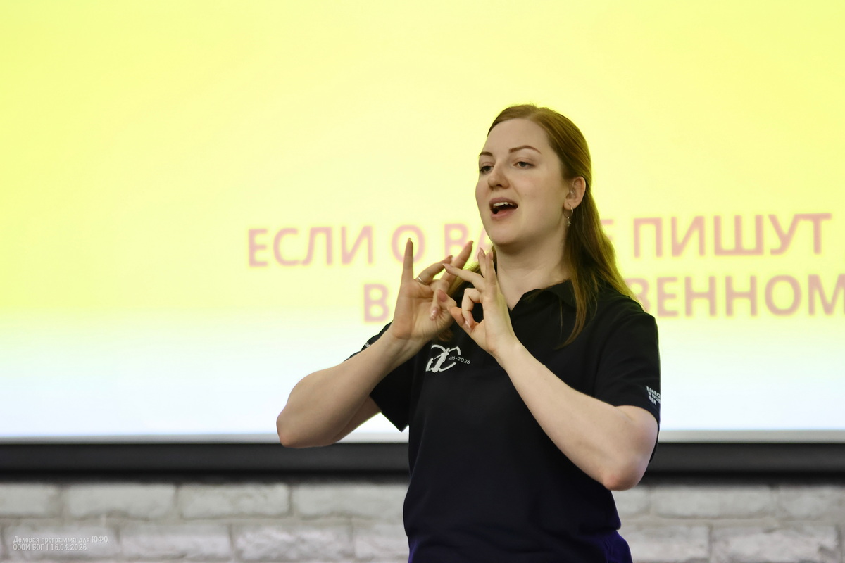 Вера поделилась своей поездкой в Ставрополь и историей о слонах, а также объяснила, с какими сложностями может столкнуться глухой человек в другом городе: отсутствие экскурсовода, непонимание, к кому обратиться за информацией. Отдельно она отметила важность развития интересов у детей в современном мире — чтобы росло современное поколение, и внимание уделялось не только взрослым.