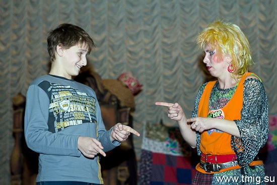 Вообще-то этот момент, когда к сюжету спектакля подключается кто-нибудь из зрителей - сам по себе очень интересный. Никакой заранее договоренности с кем-либо из зала нет и не было никогда. Самый настоящий интерактивный диалог, когда зритель становится полноправным героем сказки.