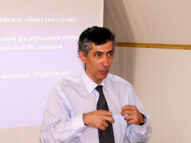 Затем слово было предоставлено В.З. Базоеву. В выступлении Полномочного представителя Президента ВОГ в ЦФО была дана подробная информация о членах ВОГ Центрального федерального округа. Скупые цифры презентации на экране рассказывали о количественном и качественном составе членов ВОГ и о возрасте. Были приведены ошеломляющие данные о том, как исполняются Федеральные законы чиновниками на местах. О том, что не во всех регионах местные власти знают о Федеральном Законе поддержки инвалидов и о Федеральном перечне технических средств реабилитации. В некоторых регионах проявляют «самостоятельность» в толковании Федерального закона, что недопустимо.