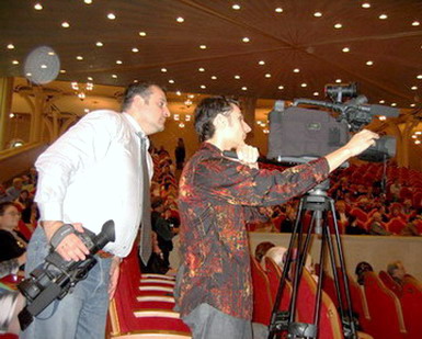 Нижегородские телевизионщики усердно выполняют свою работу.