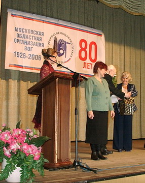 Депутат Мособлдумы Р.В. Тишин Поздравляет Е.П. Горячеву и всех с юбилеем ВОГ. Кстати, МособлВОГу столько же лет, сколько и самому ВОГу