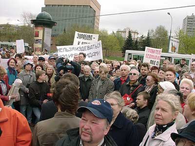 Около Горбатого мостика у Белого Дома под лозунги и транспаранты: «Зурабова – в отставку!», «Не отнимайте у нас лекарства – жизнь!», «Инвалидам – работу и поддержку!» - состоялся митинг общественных организаций России.
