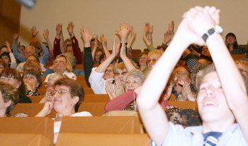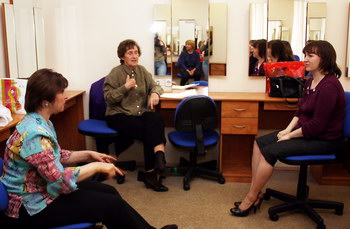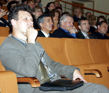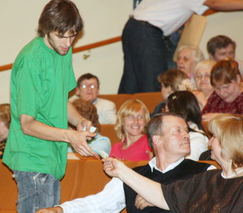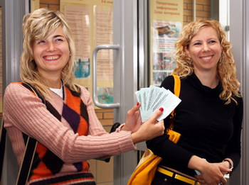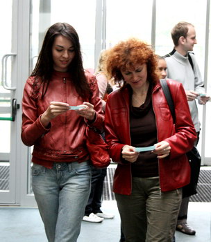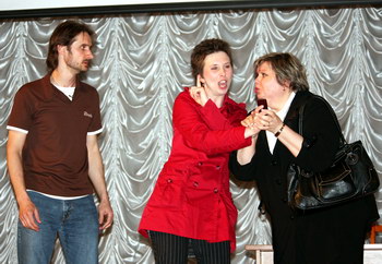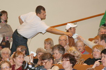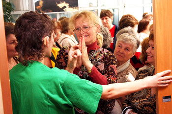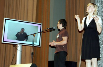 Тем временем народ собирался. И было его много. Оно и понятно: переводчик жестового языка - не только самая уважаемая профессия среди глухих, но и... самая беззащитная... Москвичи своих переводчиков практически знают в лицо. И всегда интересно взглянуть на них в другой обстановке. Под светом юпитеров, так сказать...