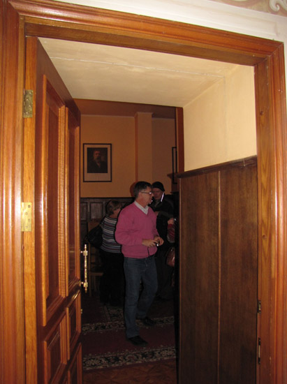 При входе в бункер. В бункер Сталин приезжал в своей жизни один раз.
