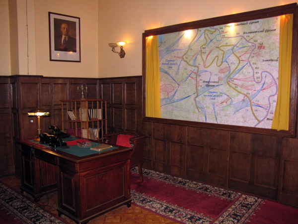 Во время отсутствия Сталина карта скрывалась желтыми шторками, чтобы никто другой не трогал карту.