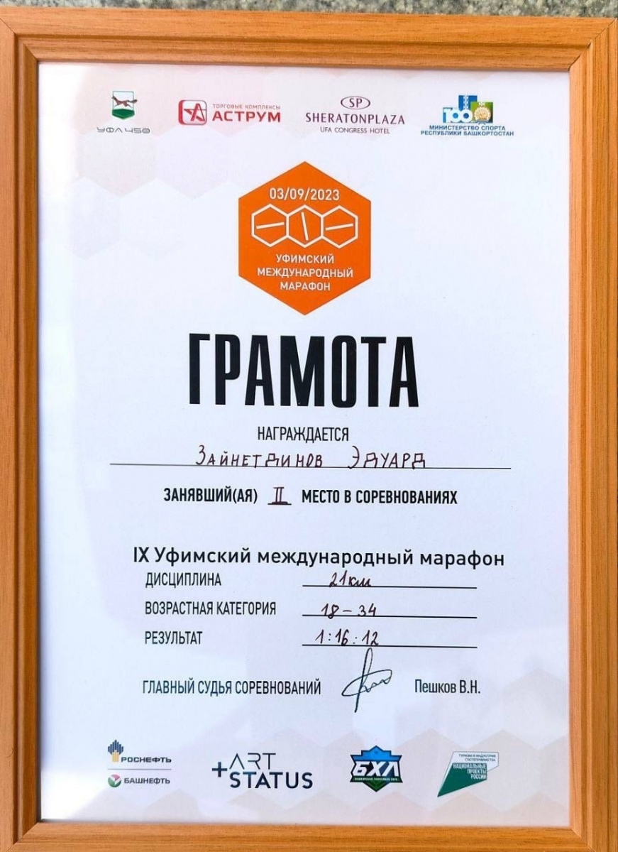 Каждой возрастной категории была предусмотрена своя дистанция, которую преодолевали участники забега. Справились все, а Эдуарду Зайнетдинову удалось завоевать второе место в дистанции 21,1 км среди слышащих в возрастной категории 18-34 лет