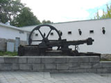 На фото № 15 можно увидеть большой котёл, в котором плавили железную руду. Вообще во дворе музея стояли уникальные объекты, такие большие, что я по сравнению с ними букашка по размерам. Фото № 16. Кузнечный молот.