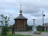 Слева от Храма-на-Крови есть деревянная часовня-молельня. Желающие могут поставить в ней свечку за своё здоровье и за упокой погибших членов царской династии. Фото № 23.